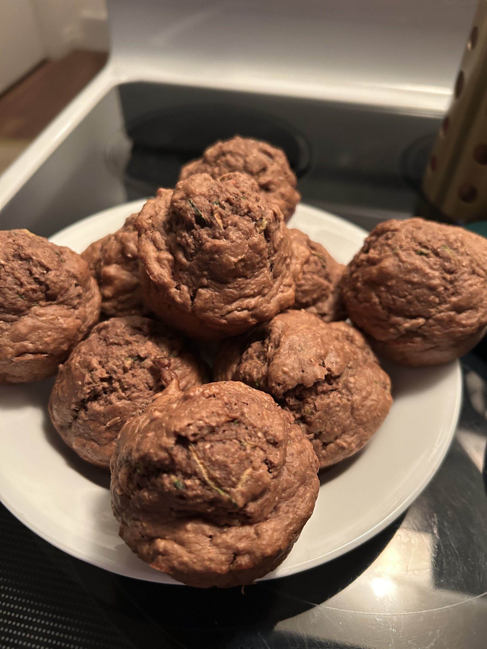 Zucchini, Banana, Chocolate & Peanut Butter Muffins