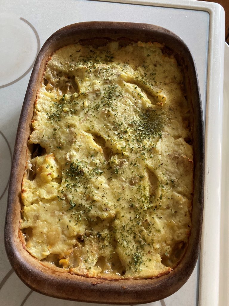 Add meat / cabbage mixture to pan, 1 can Cream Corn spread over evenly