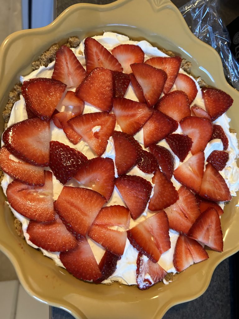 Add to Graham Wafer Crust and top with fresh slices Strawberries