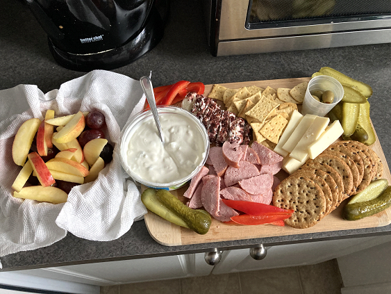 Cheese, Crackers and Fruit Snack Board